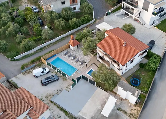 La Holiday Home Daleo dispone di un bollitore elettrico, una lavastoviglie e un frigo nell'angolo cottura attrezzato per il self-catering. Gli ospiti hanno la possibilità di cenare presso il ristorante Flamingo Nova, a soli 8 minuti a piedi. Grazie alla fermata dell'autobus Vukovarska 2 / Okretiste, situata a 150 metri, gli ospiti possono facilmente esplorare Zara. La villa dispone di una terrazza per rilassarsi dopo una giornata intensa e di una piscina privata.